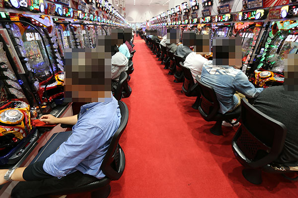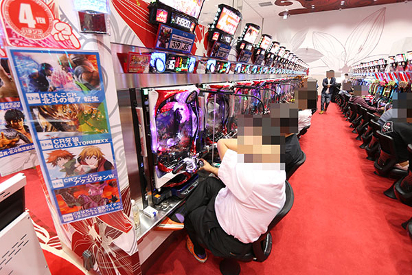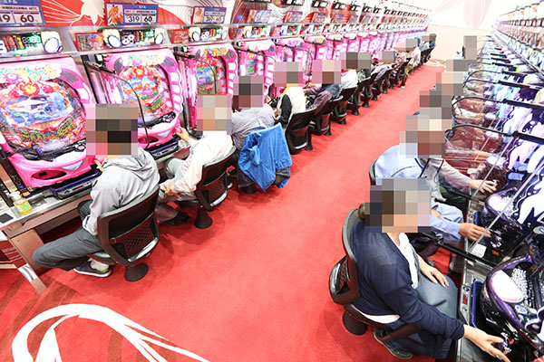 豊富なタイプを用意した1.12円パチンコでは様々な機種が好まれ、にぎやかな雰囲気に包まれていた。