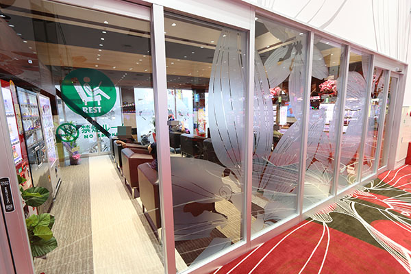 クリーンなレストスペースは利用者が多かったことからも、遊技からしばし離れてリラックスできる空間となっているようだ。