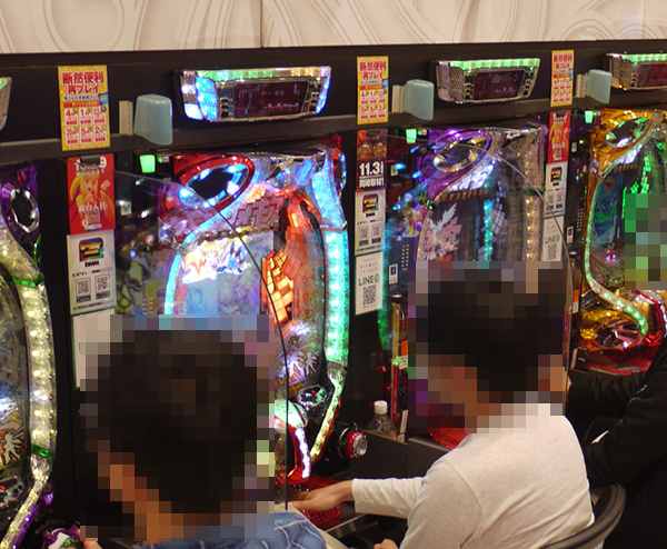 16時頃のホール内をうかがうと、「ぱちんこCR真・北斗無双 第2章」や「CRJ-RUSH4」など、さまざまな機種が盛況。絶え間なくスタッフたちが呼び出しランプに対応している姿は盛り上がりの大きさを象徴しているかのようであった。