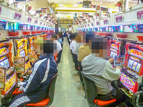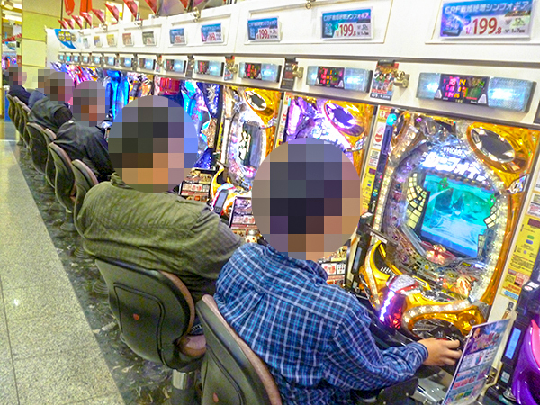 取材時には多くのプレイヤーが来店。パチンコ・パチスロともに、随所で活気が感じられた。