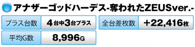 その他でも『アナザーゴッドハーデス-奪われたZEUSver.-』の1万8千枚越えなど、数多くの機種と台で羨ましいばかりのドル箱が乱れ飛んでいた。