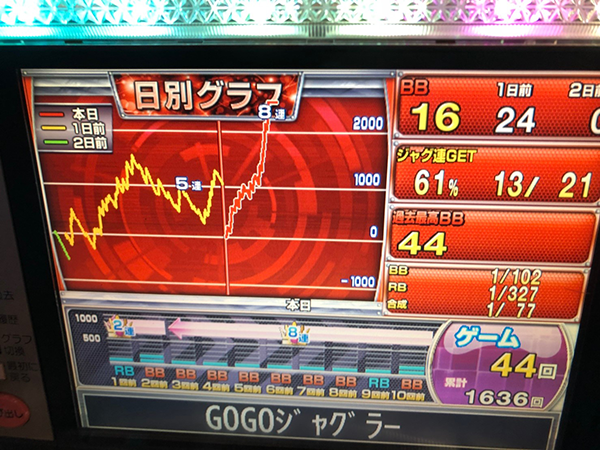 602番台の【ゴーゴージャグラー】に2日間連続でウェーブ発生!