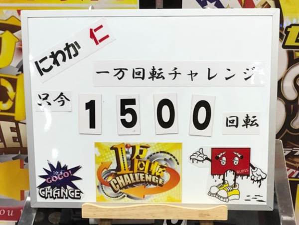 1週間前にこのホールでおこなったチャレンジでは、プラスの差枚となるも挑戦は失敗。外見だけでなく、今回は1万回転と勝利のダブル達成でも存在をアピールしたい!