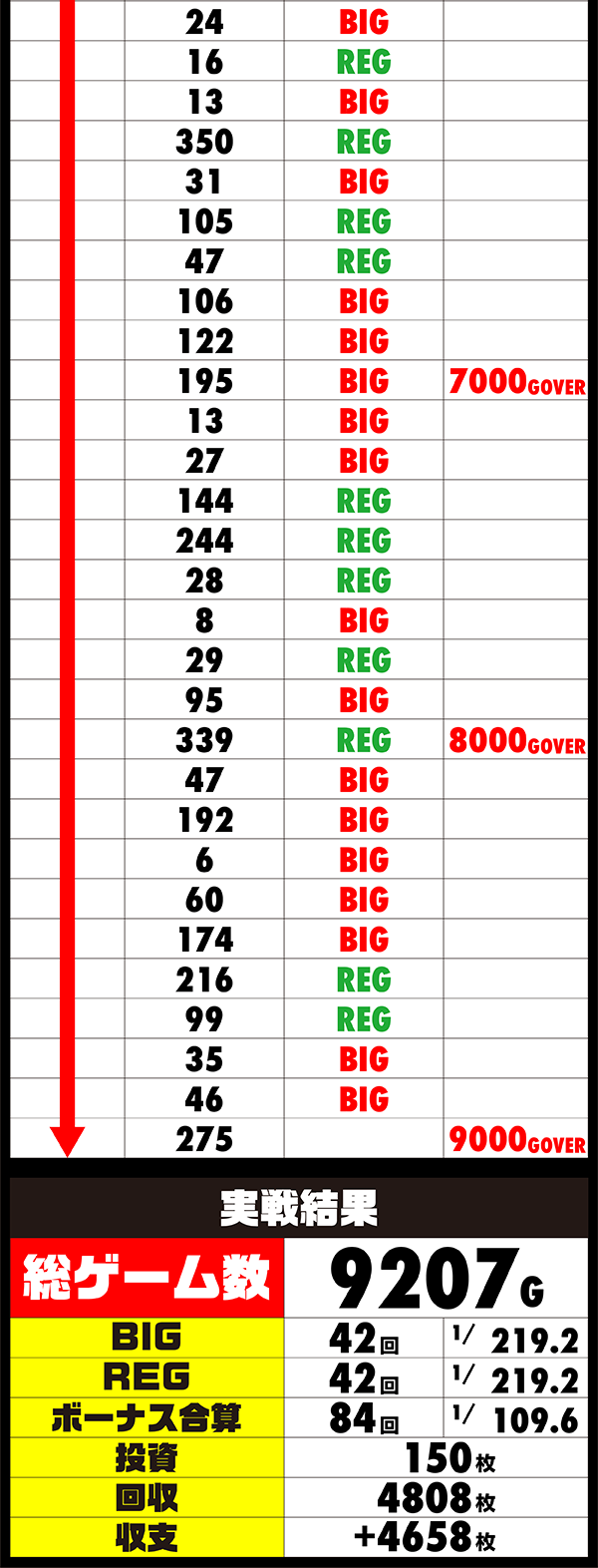 しかし、終了時間までに消化したゲーム数は9207Gと、チャレンジは大失敗!