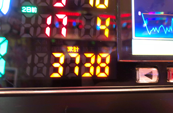 あとは通常時をテンポよく消化して目標を達成するだけなのだが、21時頃までに消化したゲーム数は約8300Gと、1万回転を目指すにはかなり厳しい展開になっていた。