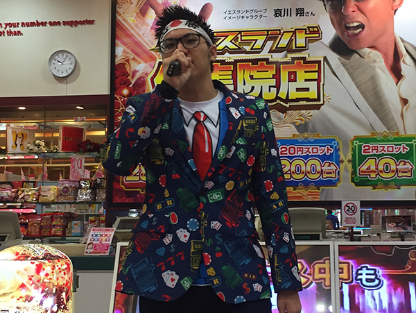 このホールを訪れるのは約5ヶ月ぶりということもあってか、カメラにむかってしきりにポーズを決めるなど、開店前からテンションが上がっている様子であった。