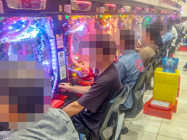 15時ごろの4円パチンコを見ると、「ぱちんこCR真・北斗無双 第2章」や「CRフィーバー戦姫絶唱シンフォギア」で機種性能をフルに活かすプレイヤーが続出。あちこちで微笑ましい光景を確認している。