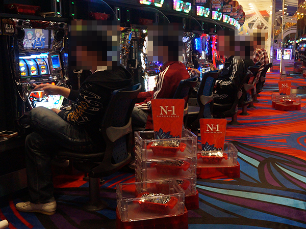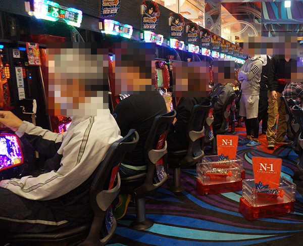 「パチスロ 交響詩篇エウレカセブン2」や「ツインドラゴンハナハナ‐30」など、幅広いスペックの機種でプレイヤーが活躍していたパチスロコーナーにおいても、とくに魅力的な光景が広がっていた。