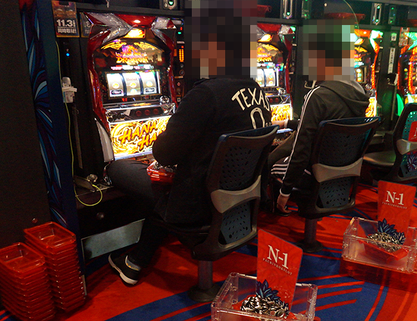 シマ内には、イキイキとした表情でレバーを叩いているといったプレイヤーも多数。心から遊技を楽しめていることが伝わってきた。
