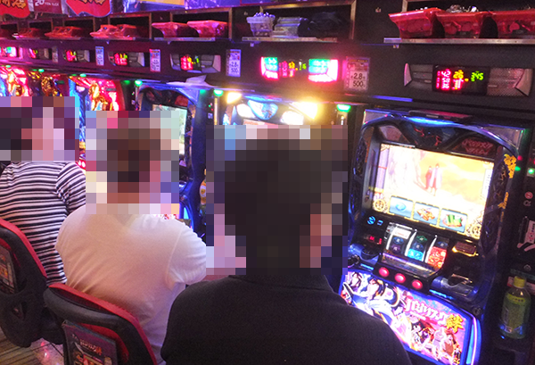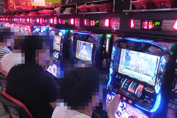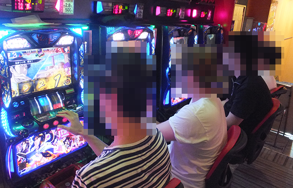 パチスロコーナーを進んでいくと、さまざまな機種に遊技を楽しむプレイヤーの姿があった。