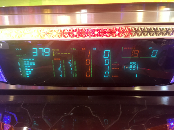 通常時を消化するペースがイマイチということもあり、総大当り回数がたった1回のキビしい状況で折り返しの時間をむかえていた。