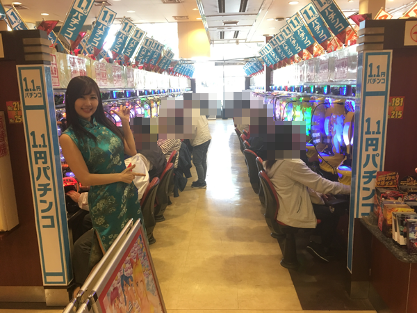 たくさんのプレイヤーと一緒に入場したあとは、「ぱちんこCR真・北斗無双」を確保。パチスロコーナーもふくめ、大きくにぎわっている状況において、成功といった姿で目立つことはできるのか!?
