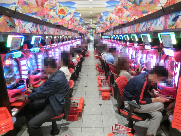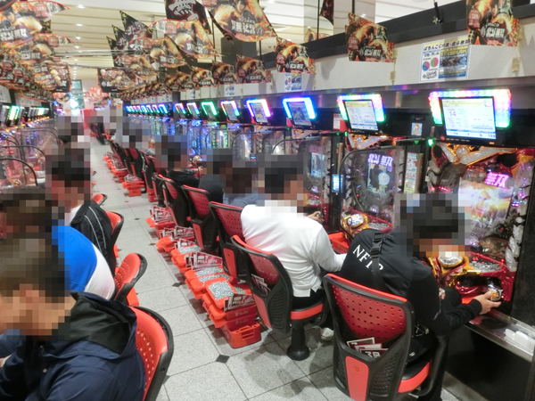 4円パチンコを見てみると、「ぱちんこCR真・北斗無双」と海物語シリーズに人気が集中。空台はほとんど見られないほどに盛り上がっており、イキイキとした表情で遊技するプレイヤーであふれ、充実した時間を過ごせていることがうかがえた。