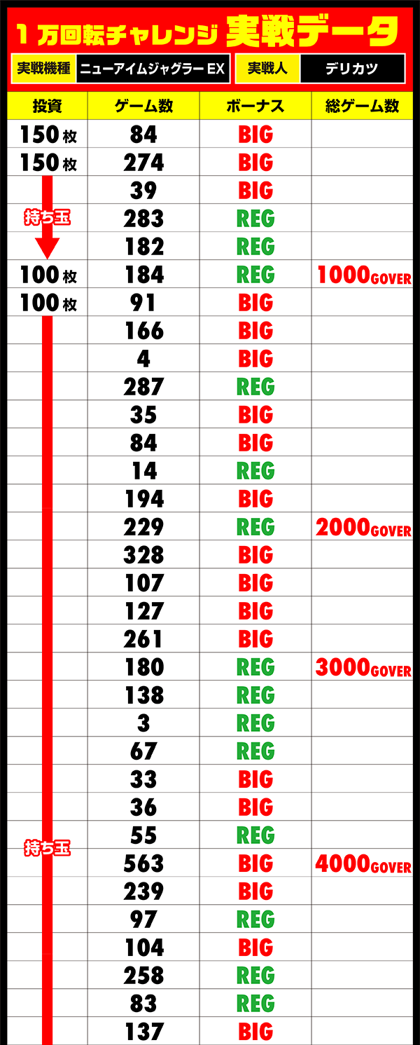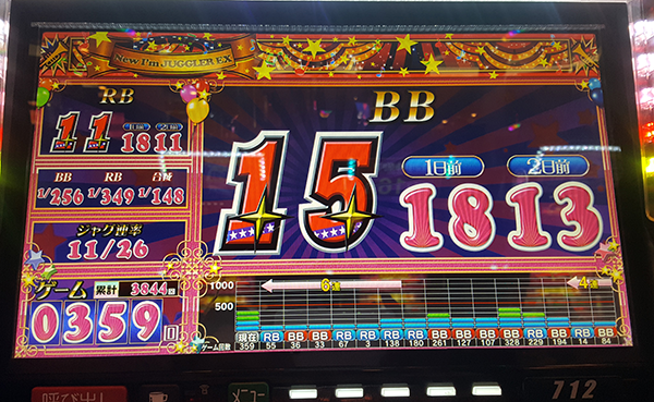 しかし、気合いはスピードにつながらず、12時頃の総ゲーム数は約1500Gと、なんとも平凡な数字に落ち着いてしまう。