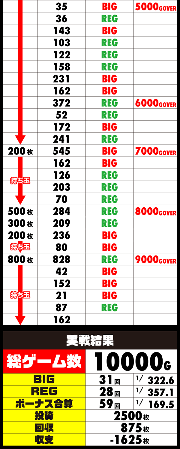 このホールでおこなった前回のチャレンジでは、1万回転まであと54Gというところで力尽きてしまい失敗。