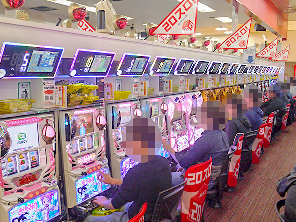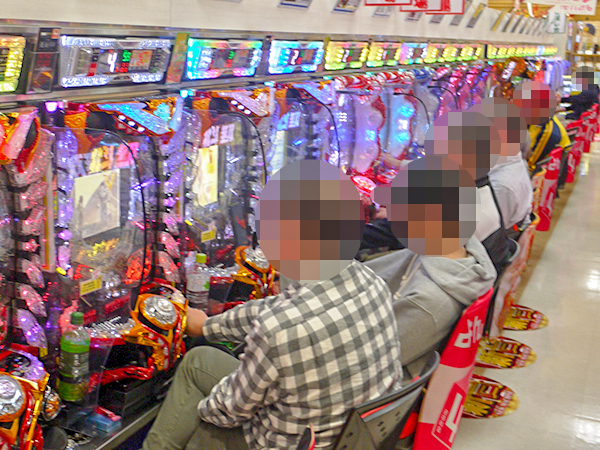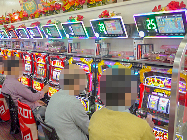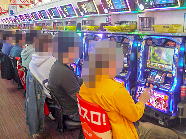 取材時の店内には既に多くのプレイヤーが集結し、パチンコ・パチスロを問わずにぎやかな状況となっていた。