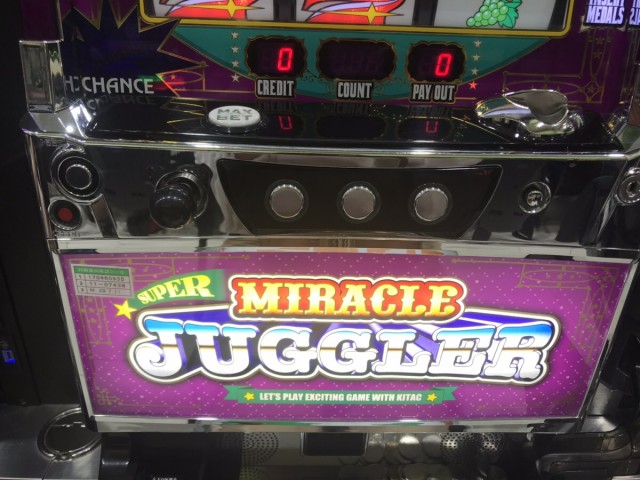後半戦は全体的に盛り上がっていた、『スーパーミラクルジャグラー』を打っていきます。