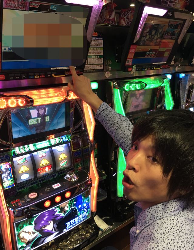 「スロットタワージャルダン」で毎回あの設定が使われると噂を耳にした編集K山さんは、朝から『3×3EYES ~聖魔覚醒~』を見事ゲット。