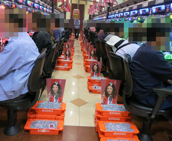 海物語シリーズも機種を問わずにプレイヤーが遊技をおこなっており、こちらにも空き台はほとんど見当たらない。