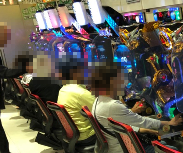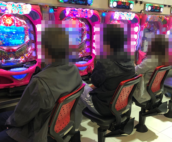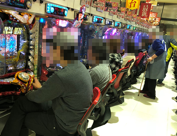 午後のパチンコをみると、前日から引き続き海物語シリーズの支持が厚い。満足そうに遊技をおこなっている姿も多かった。