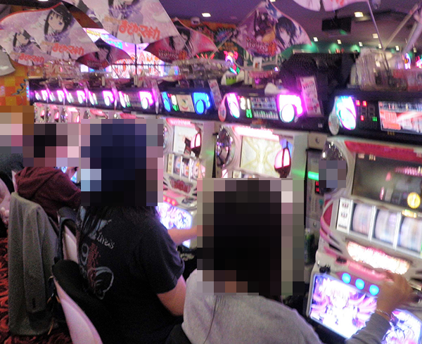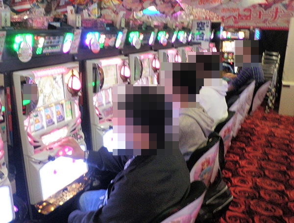 8台ずつが背中あわせに設置されており、どちらのシマも高稼働となっていた。