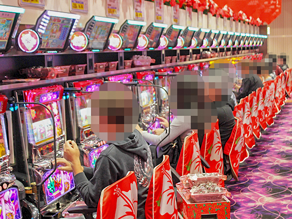 5円・2円パチスロに目を移すと、楽しそうにレバーを叩くプレイヤーが至る所で見られた。