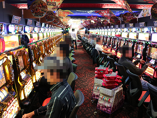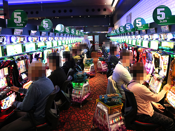 店内には老若男女を問わずプレイヤーが集合。パチンコ・パチスロの各シマから活気が感じられた。