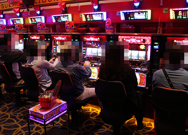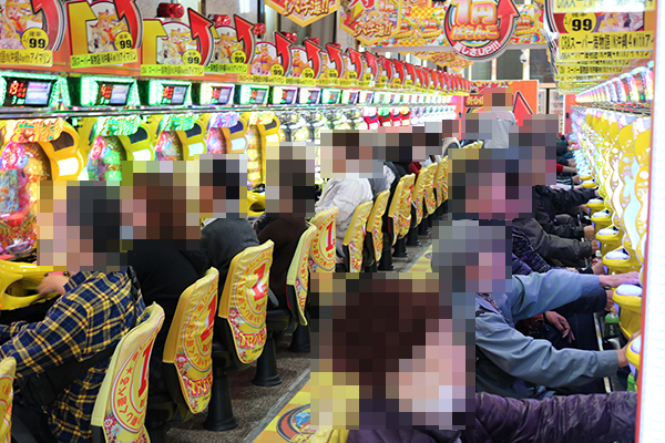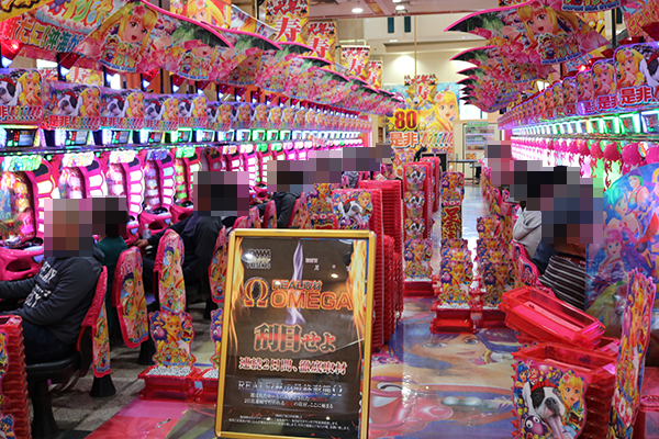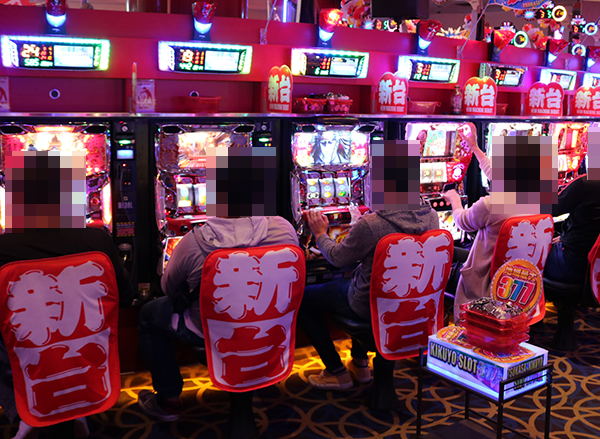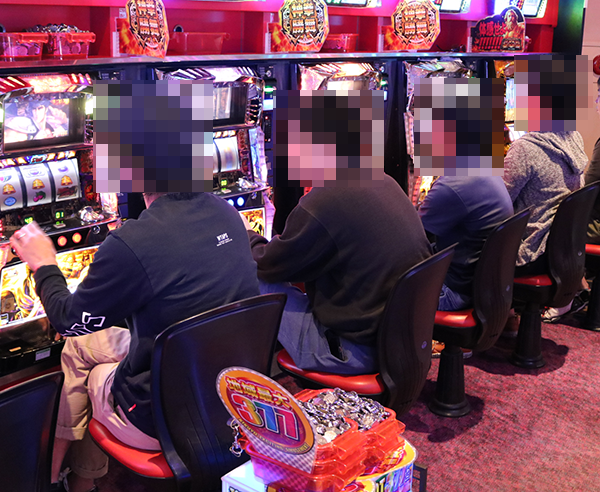 キャラクターやきらびやかな装飾が目立つホール内にて、楽しそうに遊技をおこなっていた。