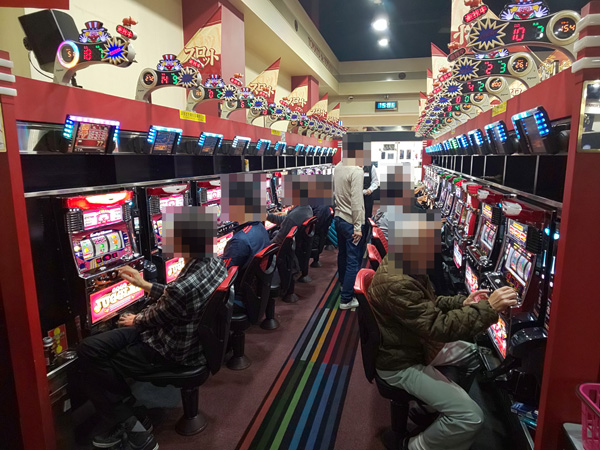 17時頃の店内はパチスロコーナーを中心に、多くのプレイヤーでにぎわいを見せていた。