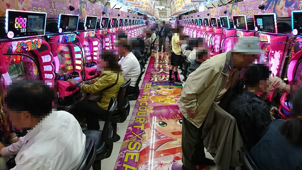 1円パチンコも高稼働をキープ。プレイヤーたちは遊技を楽しむことができていた様子で、スペックを問わず様々な機種が活気づいていた。