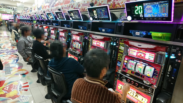 幅広い年代のプレイヤーで盛り上がっていたジャグラーシリーズ。その中でも特に「ゴーゴージャグラー」と「みんなのジャグラー」で笑顔のプレイヤーが多いと感じた。