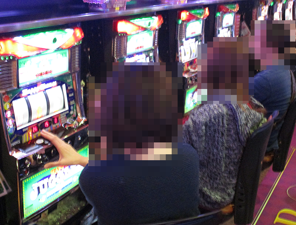 ほぼ満席といった稼働率の高さも印象的。大きなにぎわいが感じられ、ジャグラーシリーズで構成されたシマのなかでもひときわ目立つ存在となっていた。