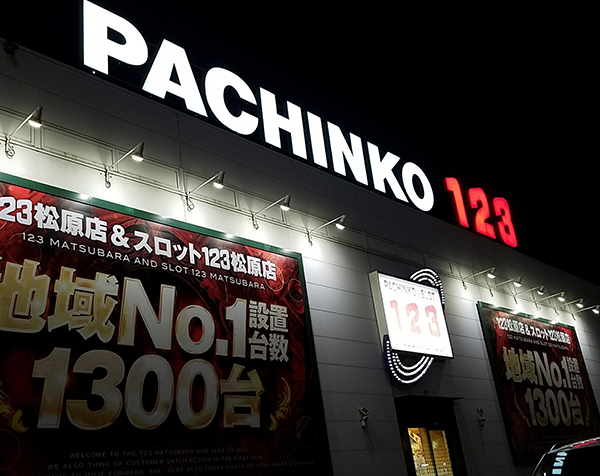 「ハナビ」を筆頭に、新台から定番機種にいたるまで厚く支持されていた「123松原店」。液晶付きのデータカウンターを利用している姿もあり、さまざまな角度からプレイヤーは満足感を得られているように思えた。