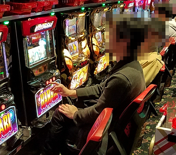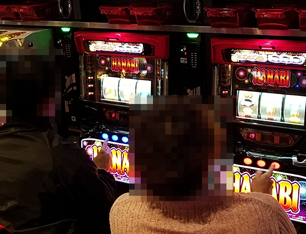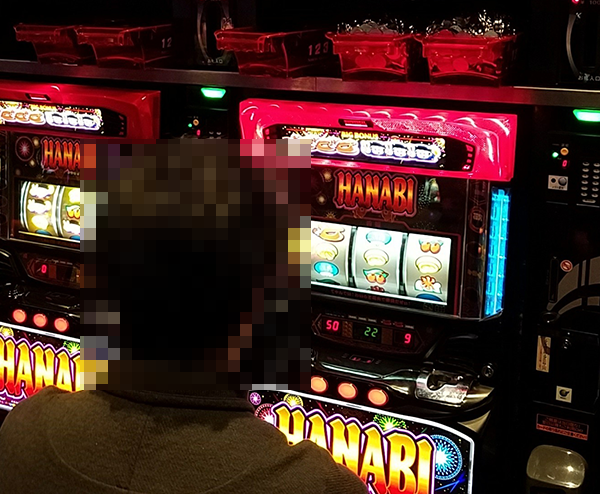 ボーナスタイプが集められているシマにおいて、「ハナビ」は背中合わせで2台ずつ設置。稼働していた2台に目を向けると、両方に機種のポテンシャルを引き出せているといった光景が広がっていた。