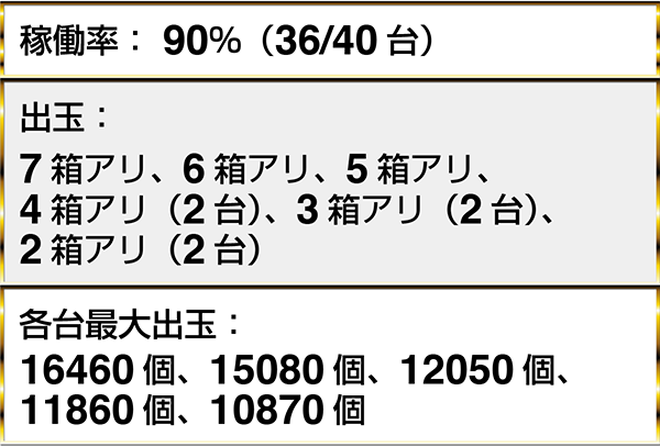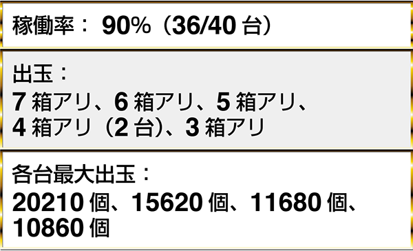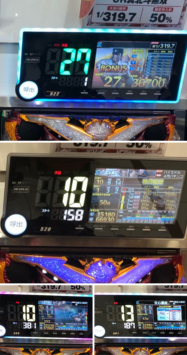 『ぱちんこCR真・北斗無双 第2章』や『CR大海物語4』にも、10000個以上の出玉を確認した。