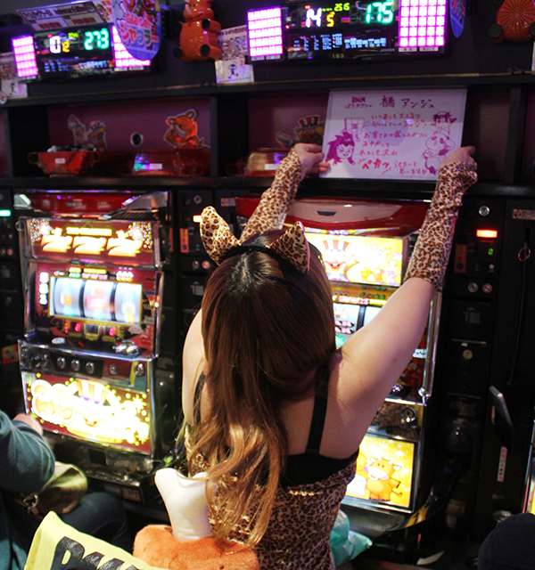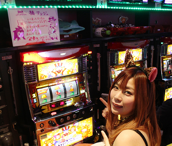 にぎやかな店内でアンジュちゃんが選んだのは「みんなのジャグラー」です☆