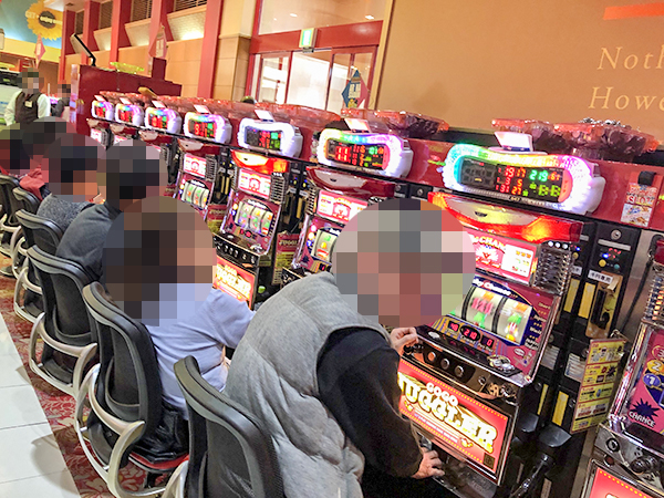 取材時は既に多くのプレイヤーであふれており、パチンコ・パチスロを問わず楽しげな表情でいっぱいだった。