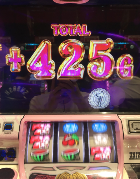 私の予想では設定5かなと。それだけに引けなくて悔しい…」