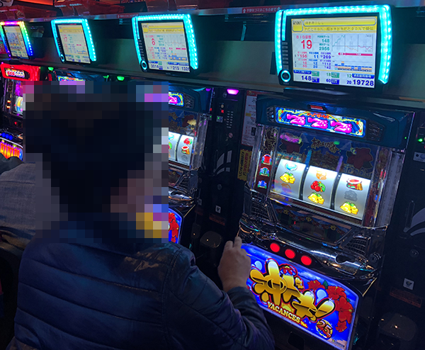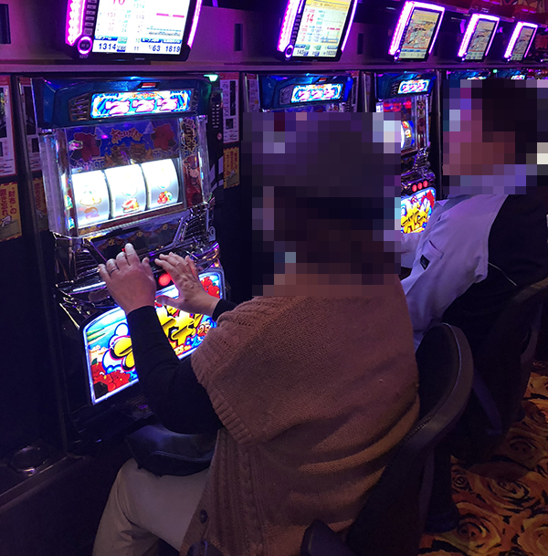 レバーを叩き、ストップボタンを押すといったひとつひとつの行動が軽やか。満足度の高い遊技をおこなえていたからこそ、各シマでうれしそうな表情がみられたのだと思えた。