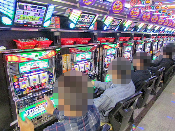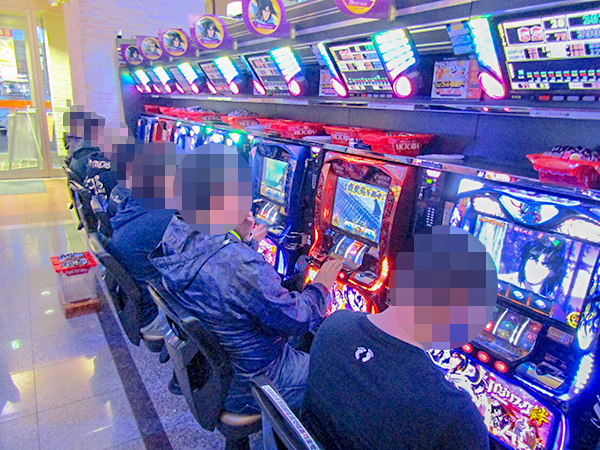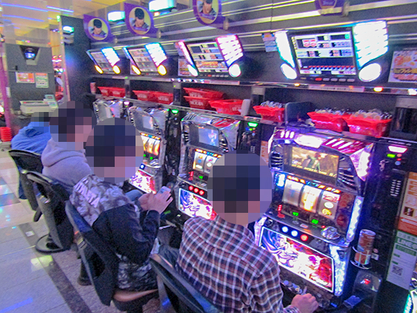 1000円/176枚パチスロは機種を問わず好評。楽しそうにレバーを叩くプレイヤーが多かった。