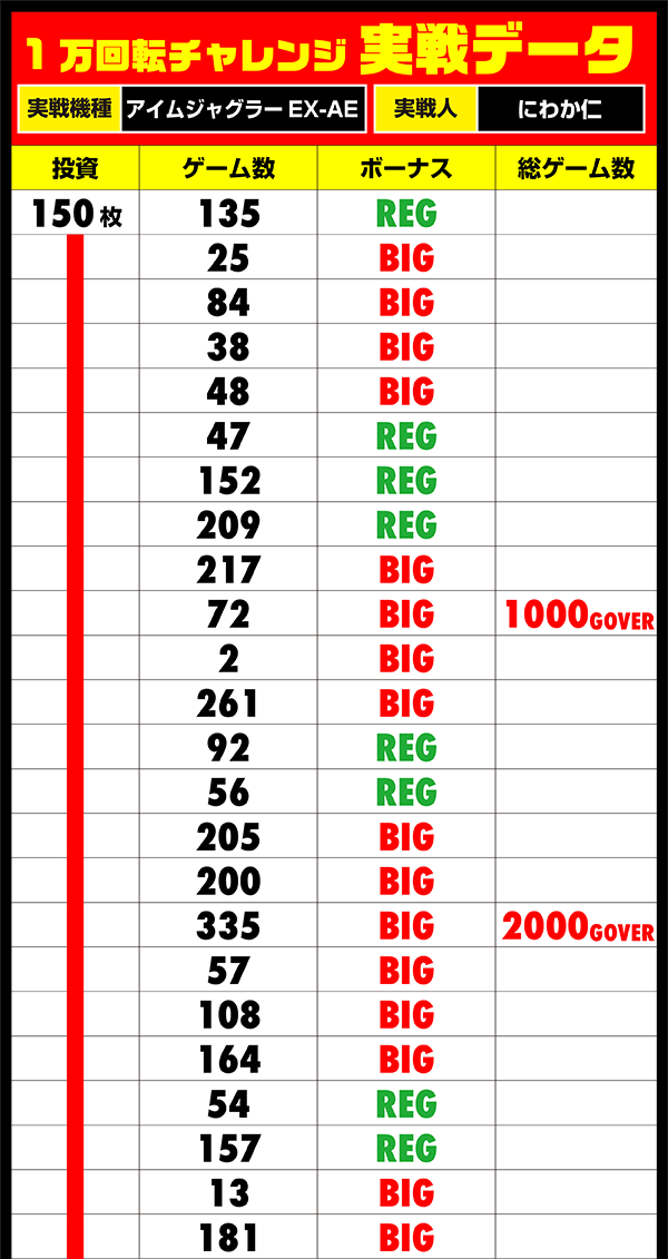 入場後は、「アイムジャグラーEX-AE」を実戦機種に選んで挑戦開始。軽やかなプレイで、華麗に目標を達成することはできるのか!?