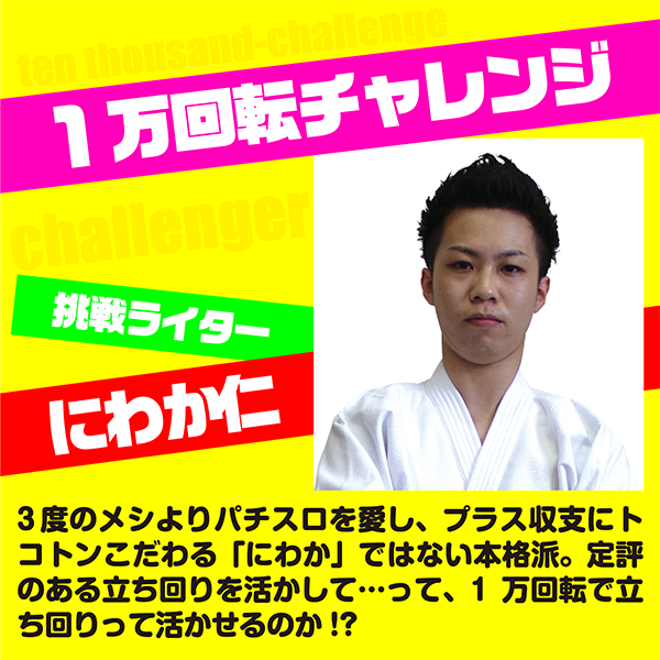 これまでは白い道着を着てチャレンジをおこなうことが多かったが、この日はジーンズにパーカーというカジュアルな服装で1万回転に挑む。優秀な結果につながるようなら、ラフなスタイルでレバーを叩くのもアリかもしれない。