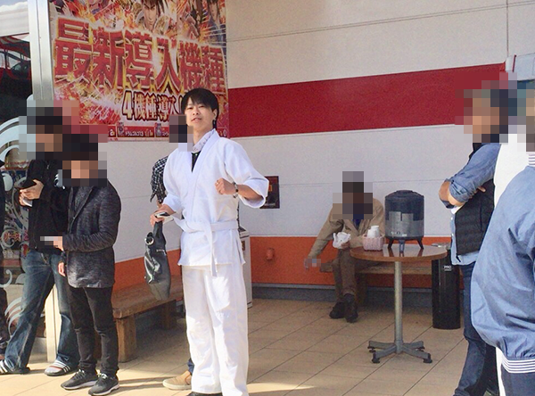 イメージキャラクターの芸能人と同じポーズで記念撮影をしていたり、常連のプレイヤーたちと談笑していたりと、楽しみながらオープン前の時間を過ごしていた。