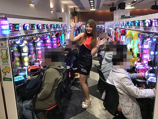 店内をまわりながら遊技中のプレイヤーに声をかけていったなのはちゃん。