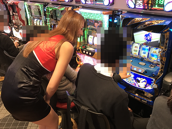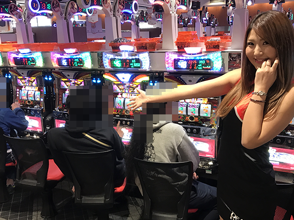 20円パチスロにおいては、「マイジャグラーⅢ」がとくに人気であり、パフォーマンスを披露している姿があった。