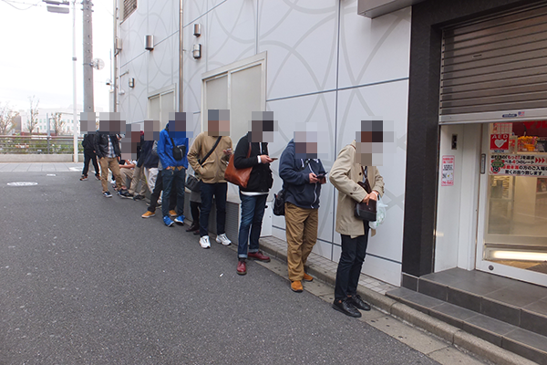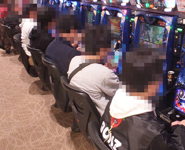 朝イチには約20名のプレイヤーが集まっており、整列場所はにぎやかな雰囲気に包まれていた。笑みを浮かべながら開店時間を心待ちにしているといった姿も目にしている。