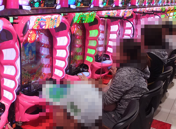 4円パチンコの「CRフィーバークィーン 2018」で遊技をはじめるプレイヤーもみられた。