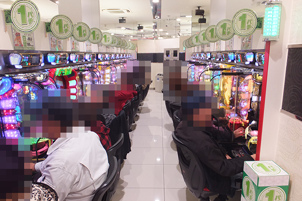 4円パチンコにおいては、「CRスーパー海物語IN沖縄4」の盛り上がりが大きい。満面の笑みを浮かべるプレイヤーがおり、シマ内に明るい光景が広がっていた。