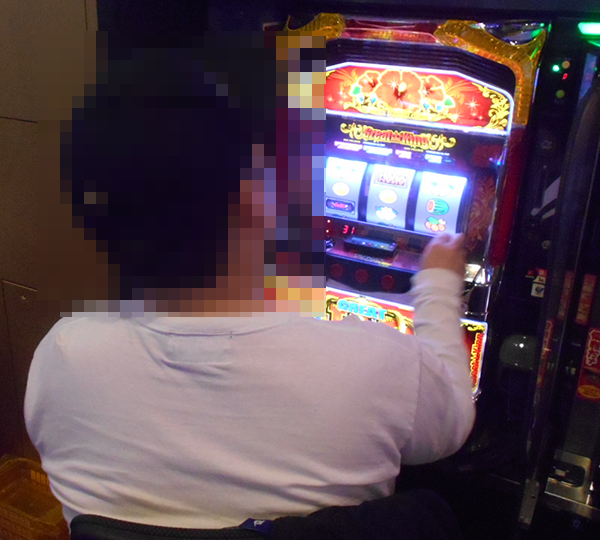 さまざまなスペックの機種が支持を集めていたパチスロフロアで、とくに明るい雰囲気に包まれていたのが「グレートキングハナハナ-30」。