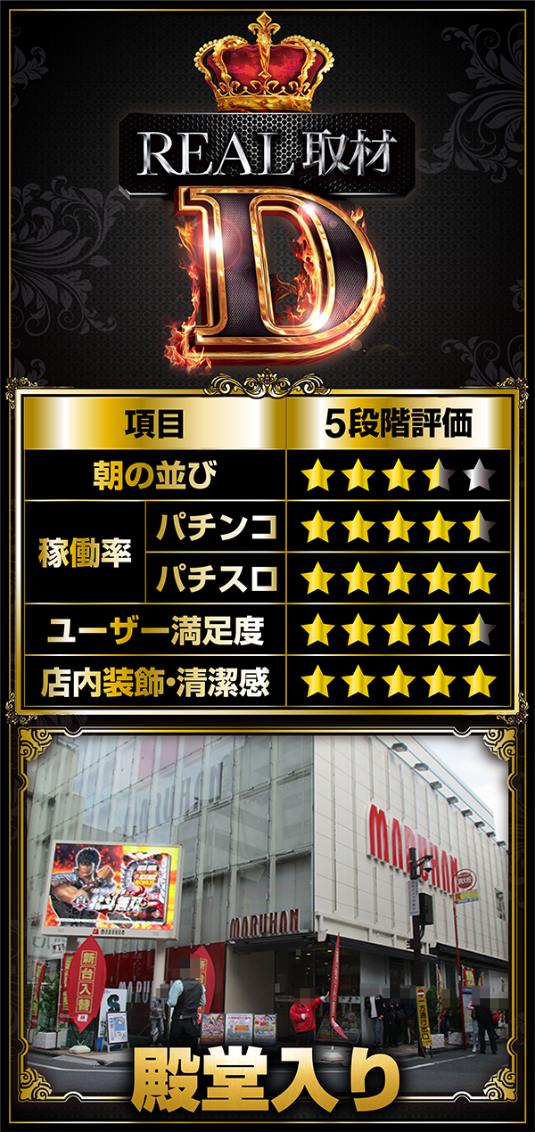 新台から定番機種まで、さまざまな機種が支持されていた「マルハン池袋店」。殿堂入りするほどの大きな魅力を持つホールであることをあらためて実感する「REAL取材D」となった。